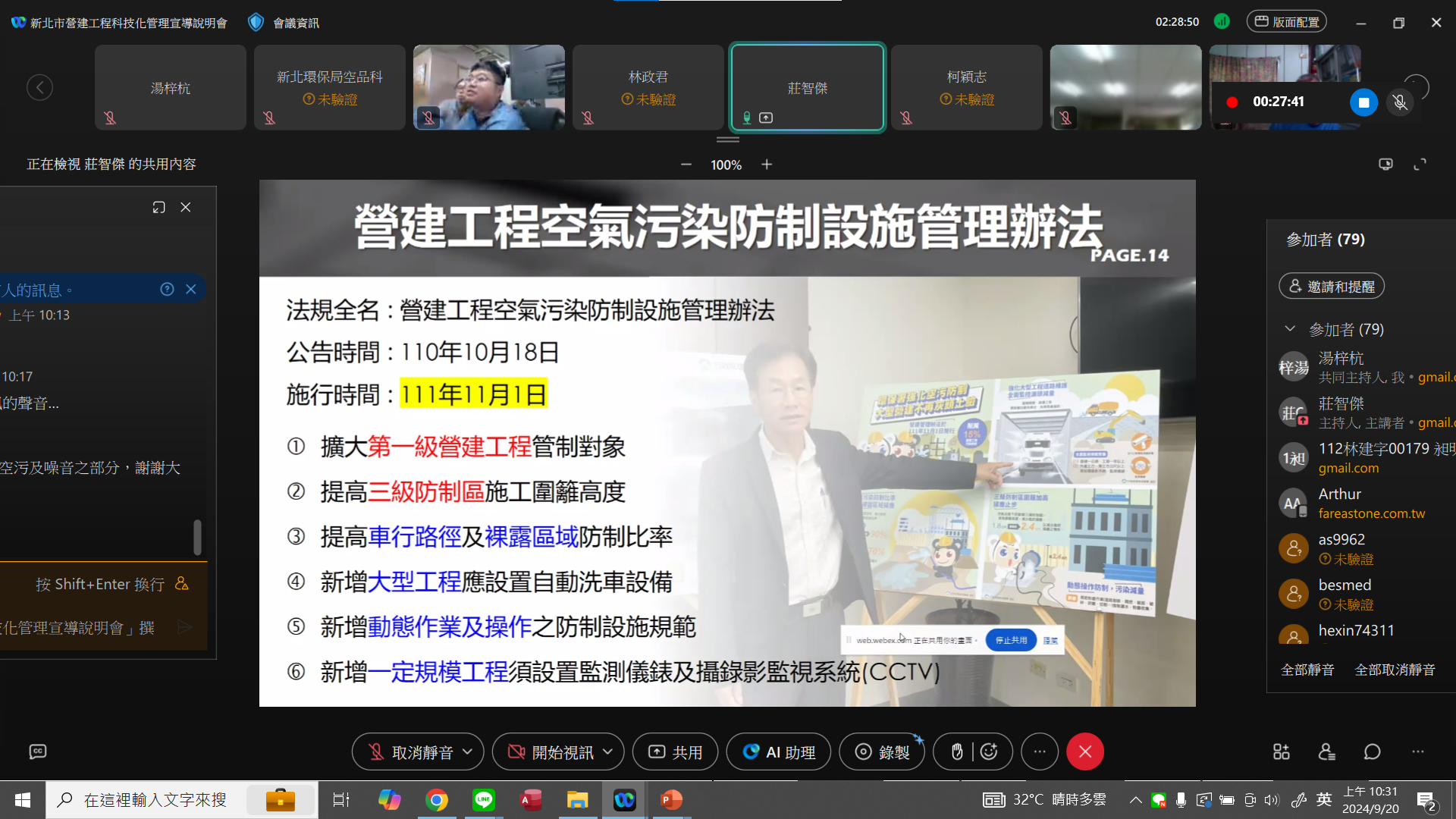 地點:新北市政府環境保護局202會議室,使用Webex辦理線上會議